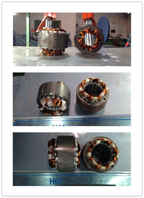 溫州市金勉電機(jī)廠專(zhuān)業(yè)生產(chǎn)直流電機(jī),電容電機(jī),目前全部手工生產(chǎn),但因手工生產(chǎn)造成困境想轉(zhuǎn)型用設(shè)備取代手工,客戶(hù)通過(guò)在網(wǎng)絡(luò)看到本公司的設(shè)備生產(chǎn)及簡(jiǎn)介看中了本公司嵌線專(zhuān)利技術(shù)“高頻振動(dòng)”,及簡(jiǎn)單的機(jī)臺(tái),所以遠(yuǎn)從千里之外來(lái)到本公司進(jìn)行實(shí)地考察和參觀。第一次到訪時(shí)首先到本公司生產(chǎn)車(chē)間觀看嵌線設(shè)備“嵌線機(jī),槽紙機(jī),槽片機(jī),初整形機(jī),扎線機(jī),終整形機(jī)”,初步了解后客戶(hù)把自己生產(chǎn)的電機(jī)拿出來(lái),當(dāng)時(shí)本公司總經(jīng)理一看就跟對(duì)方建議說(shuō)以現(xiàn)有的材料來(lái)做有難度,主要原因線模太短,會(huì)對(duì)后工序加工造成難度,而且非常規(guī)定子,為了讓客戶(hù)看到自己的產(chǎn)品生產(chǎn)出來(lái)的效果,本公司建議新開(kāi)套模具出來(lái)做試驗(yàn),通過(guò)試驗(yàn)客戶(hù)對(duì)電機(jī)性能進(jìn)行測(cè)試,于9月中旬與本公司簽定合同。