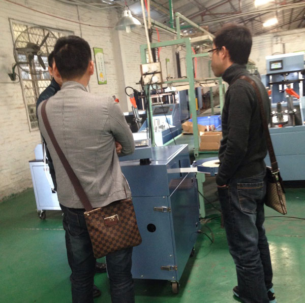 客戶在下午來到了本公司,在一番認識后客戶參觀了其最感興趣的嵌線設備的測試車間。在那里客戶看到了本公司的整組的嵌線機生產設備。在本公司技術人員的細心介紹和講解下,客戶了解到本公司嵌線設備上的優勢,對本公司的設備充滿了信心。為了更好的表達我們設備的實際操作。本公司一直根據以往的售前售中售后服務的體系,建議客戶帶幾款其生產的電機樣品來本公司做試驗。這樣不單止讓客戶知道本公司的實力,而且非僅僅的“畫大餅”。而且能讓客戶親身體驗本公司的設備,讓其了解到本公司設備操作的簡單和讓其放心。