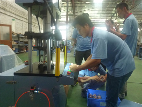 2015年7月7日上午11時(shí)許,威技公司來(lái)到華源,對(duì)伺服初整形機(jī)設(shè)備進(jìn)行驗(yàn)收,客戶驗(yàn)收的產(chǎn)品為16槽二極與四極電機(jī)定子,由于威技公司對(duì)初整后的定子內(nèi)徑、外徑、端部高度的尺寸有要求,但本公司以滿足客戶要求為標(biāo)準(zhǔn),在此次驗(yàn)收中威技公司非常滿意。
